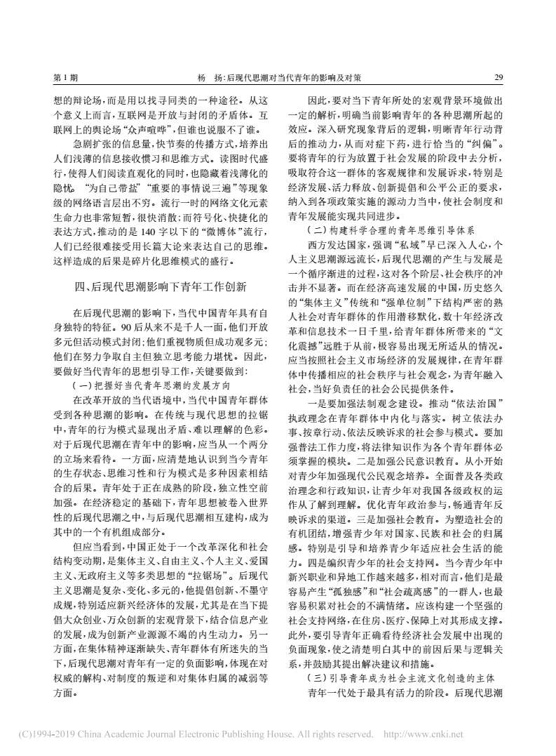 后现代思潮对当代青年的影响及对策